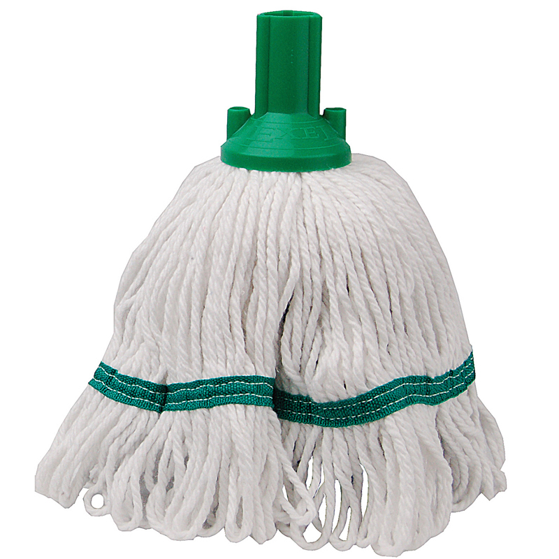 A circular universal mop head that pushes onto the mop handle. Stayflat band holds the circular shape enabling the mop to cover a larger floor area, whilst the looped yarn prevents linting and tangling when in use. Made from a unique blend of polyester and cotton yarn for improved strength and absorbency. Available in various weights and colours. Washable up to 60 degrees.