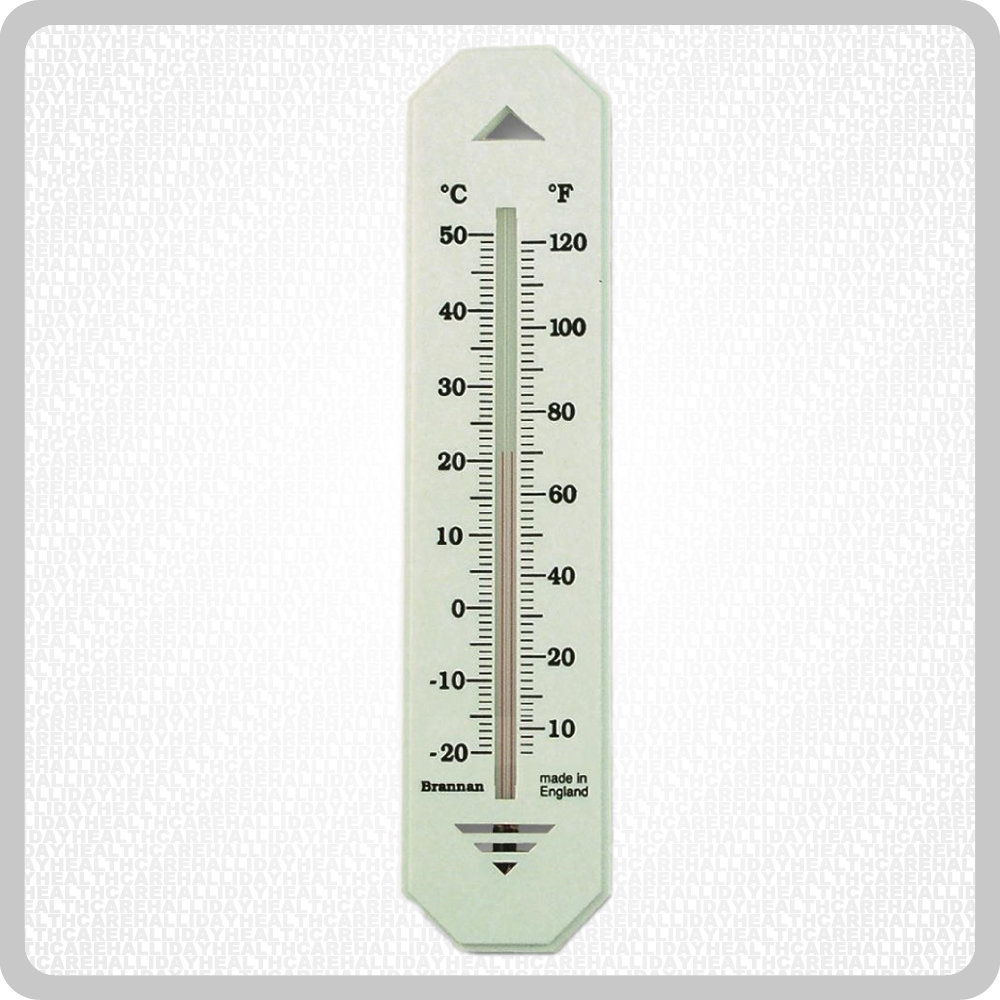 Plastic wall thermometer with clear, black printed scale on white moulding. Suitable for indoor and outdoor use, this thermometer is ideal for use in the home or the garden. °C and °F.